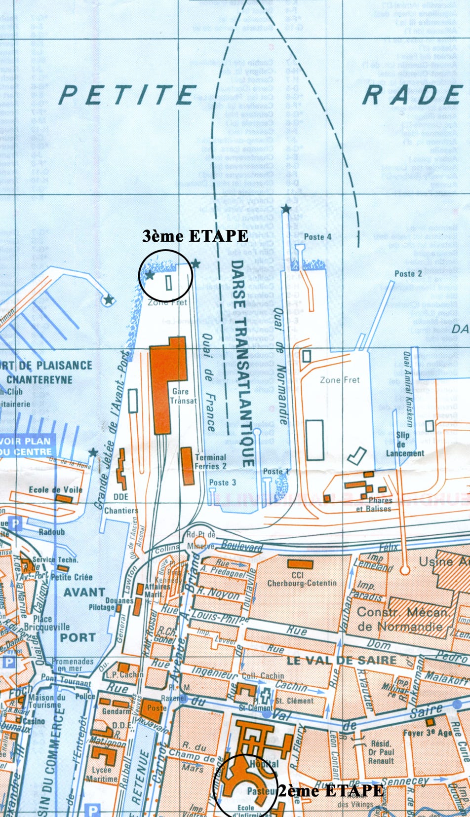 …….Mardi 29 Juin / A 23h nous arrivons à Cherbourg et nous rendons sur la rampe du port. J’effectue des marques du niveau de la marée tous les quarts d’heures afin de suivre son évolution et tenter d’extrapoler sa position le jour de l’action……….