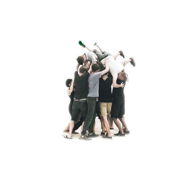 / Le contact-improvisation nous plonge dans les jeux que la gravité nous offre à l'infini. Les danseurs coopèrent et s'adaptent sans cesse aux transformations en cours, ils goutent les changements de situations physiques, ils surfent la pesanteur.